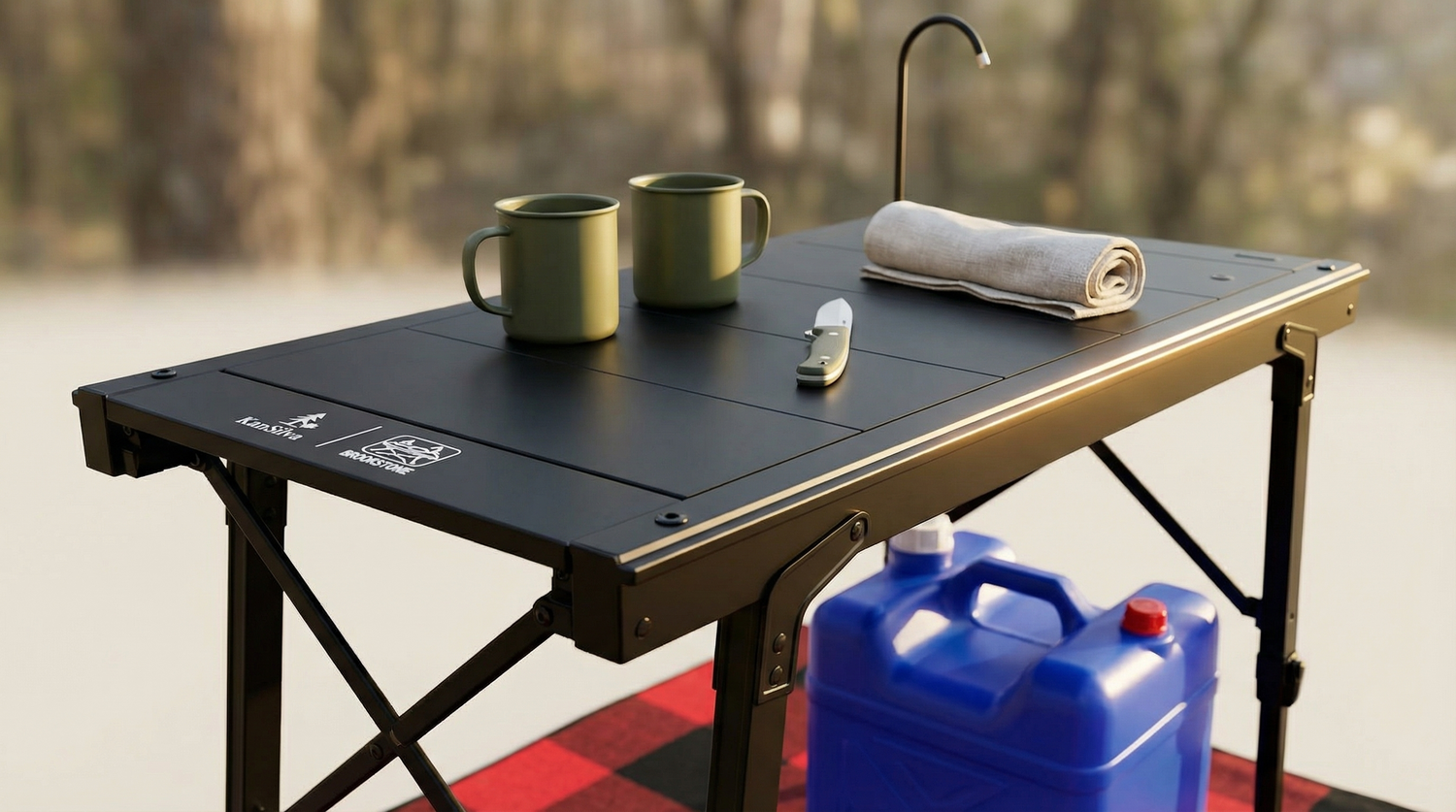 La table Brookstone est idéale pour compléter l’expérience glamping avec les tentes Hans Sovereignty ou Kamloops, vous permettant de cuisiner, laver et organiser vos repas comme à la maison, au cœur de la nature canadienne.